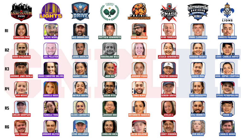 Carolina Hack’s career narrative took a new turn this draft as she was selected for the first time, having previously joined as a mid-season addition and being re-signed for the Toronto United Pickleball Club, marking her consistent loyalty to the team.